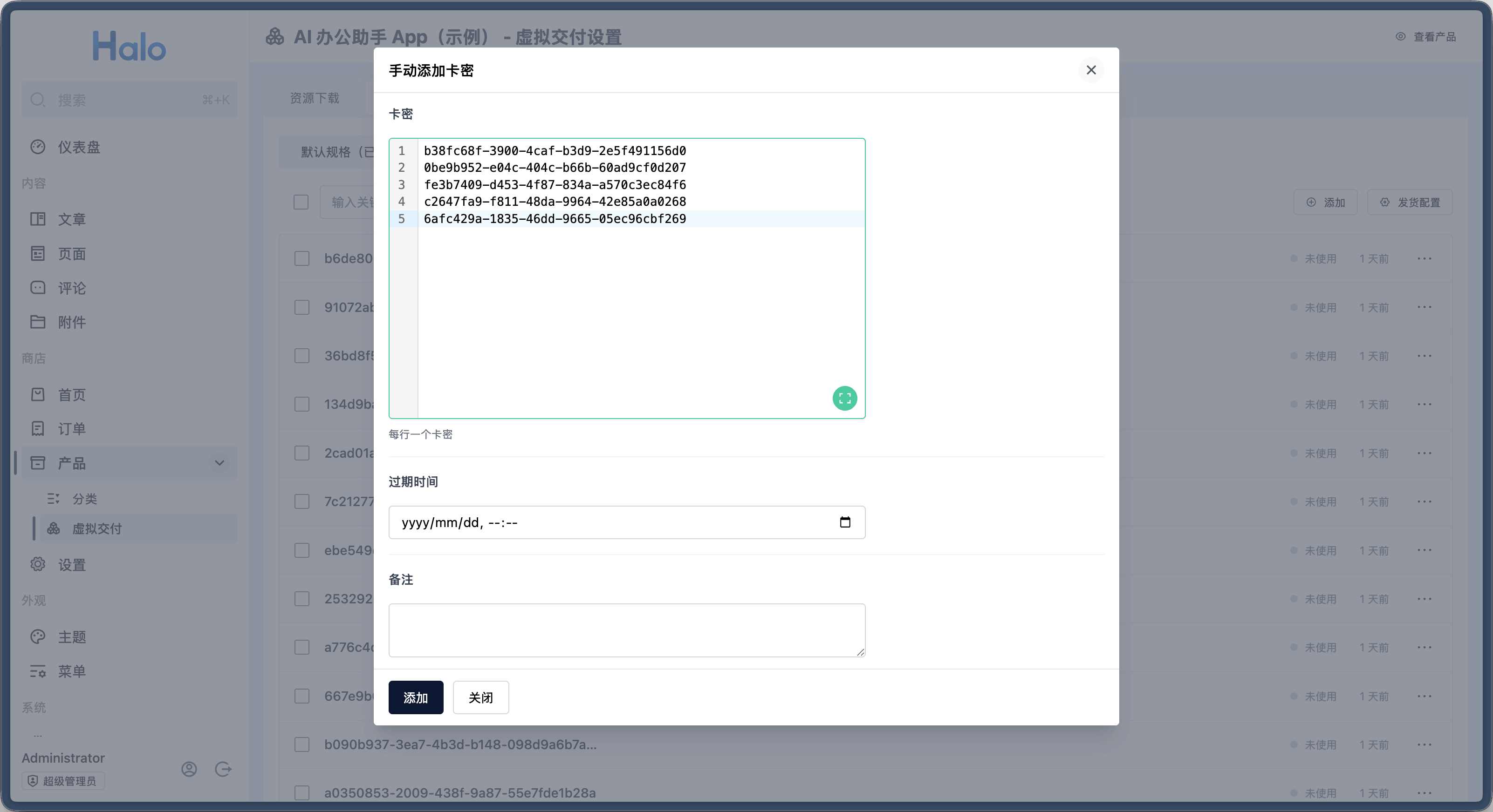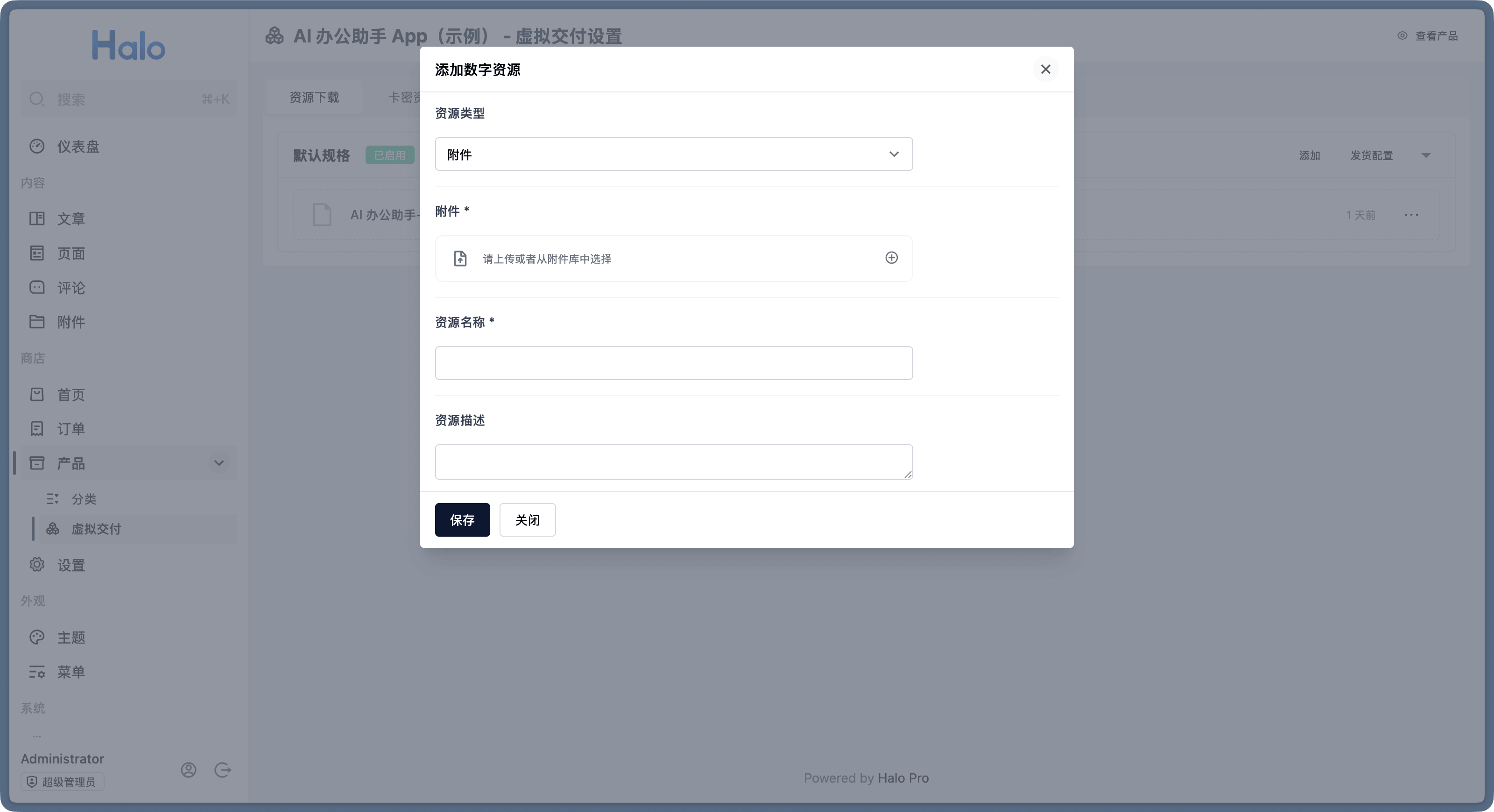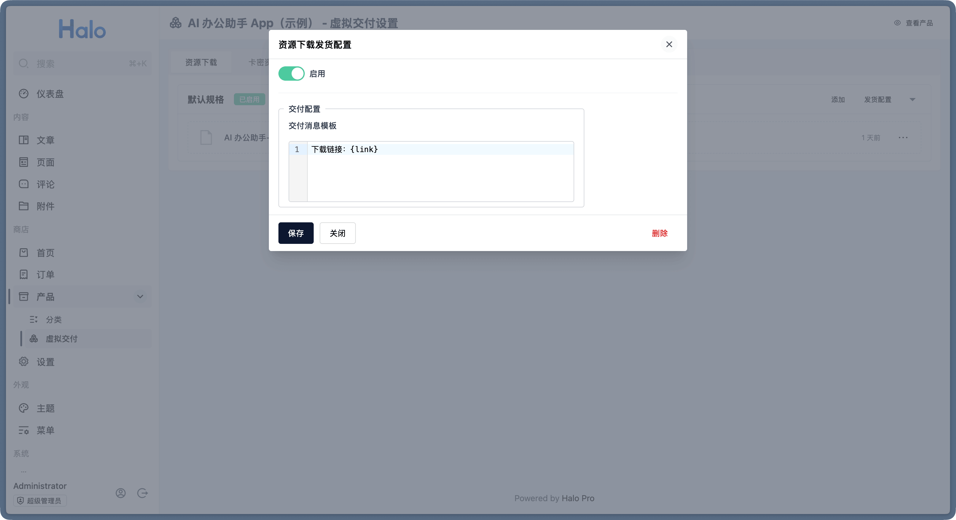 在 Halo 2.23 中,我们完善了虚拟产品的发货功能,目前支持文件资源下载、卡密发货。